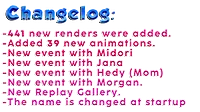 -323 new renders were added. -Added 44 new animations. -New event with Jana (Sister) -New event with Morgan and Hedy (Mom) -New event with Zaha and Diana (Aunt and Cousin) -New event with Iría...